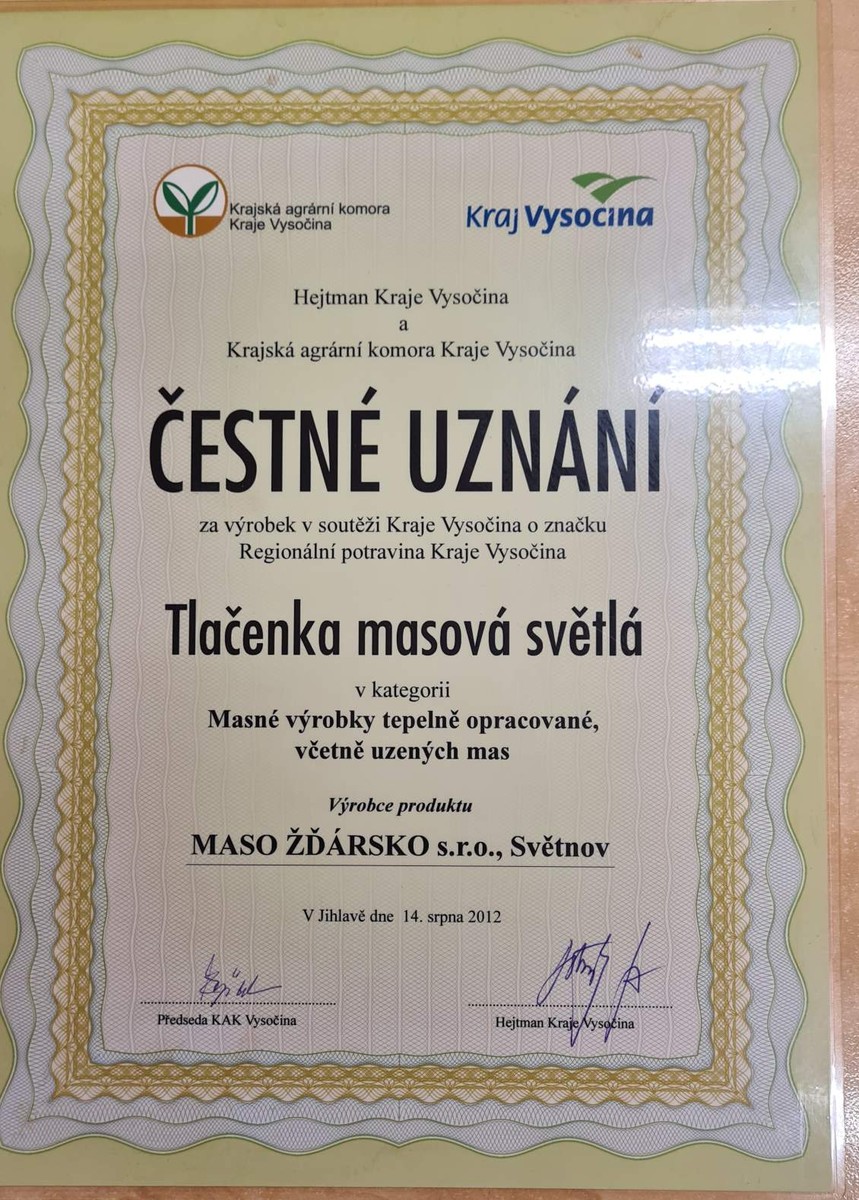 kvalitní české masné výrobky a uzeniny z Vysočiny